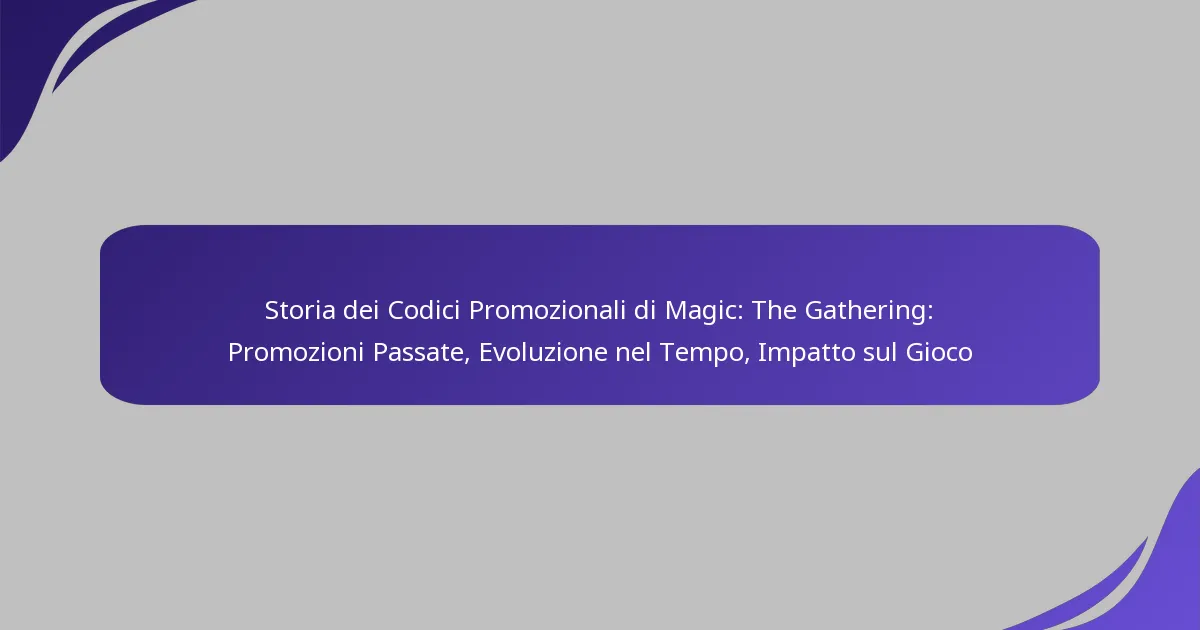 I codici promozionali in Magic: The Gathering hanno influenzato significativamente il gameplay introducendo nuove carte e meccaniche, alterando le strategie dei giocatori e migliorando il coinvolgimento della comunità. Queste promozioni hanno portato a cambiamenti nella costruzione dei mazzi e hanno favorito un ambiente di gioco più dinamico.