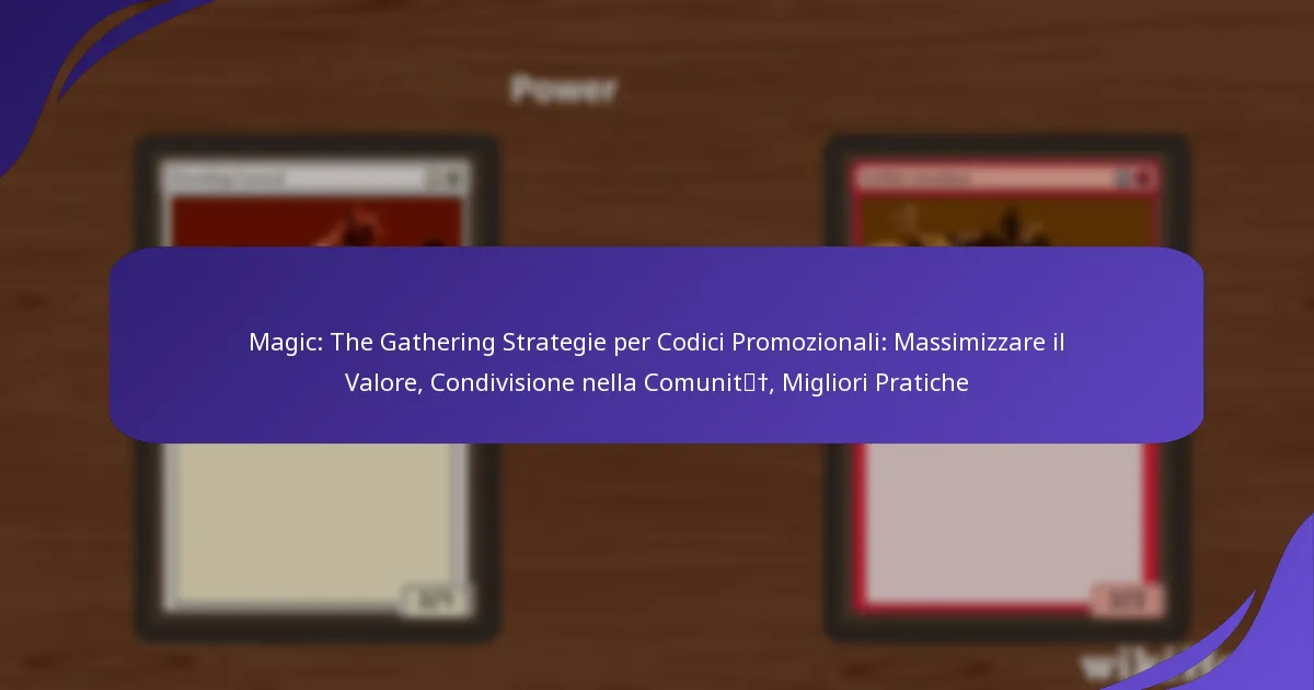 La comunità di Magic: The Gathering (MTG) può condividere i codici promozionali in modo efficace utilizzando varie piattaforme, verificando la legittimità dei codici e promuovendo l’engagement attraverso forum e social media. Queste strategie non solo massimizzano il valore per i giocatori, ma costruiscono anche fiducia all’interno della comunità.